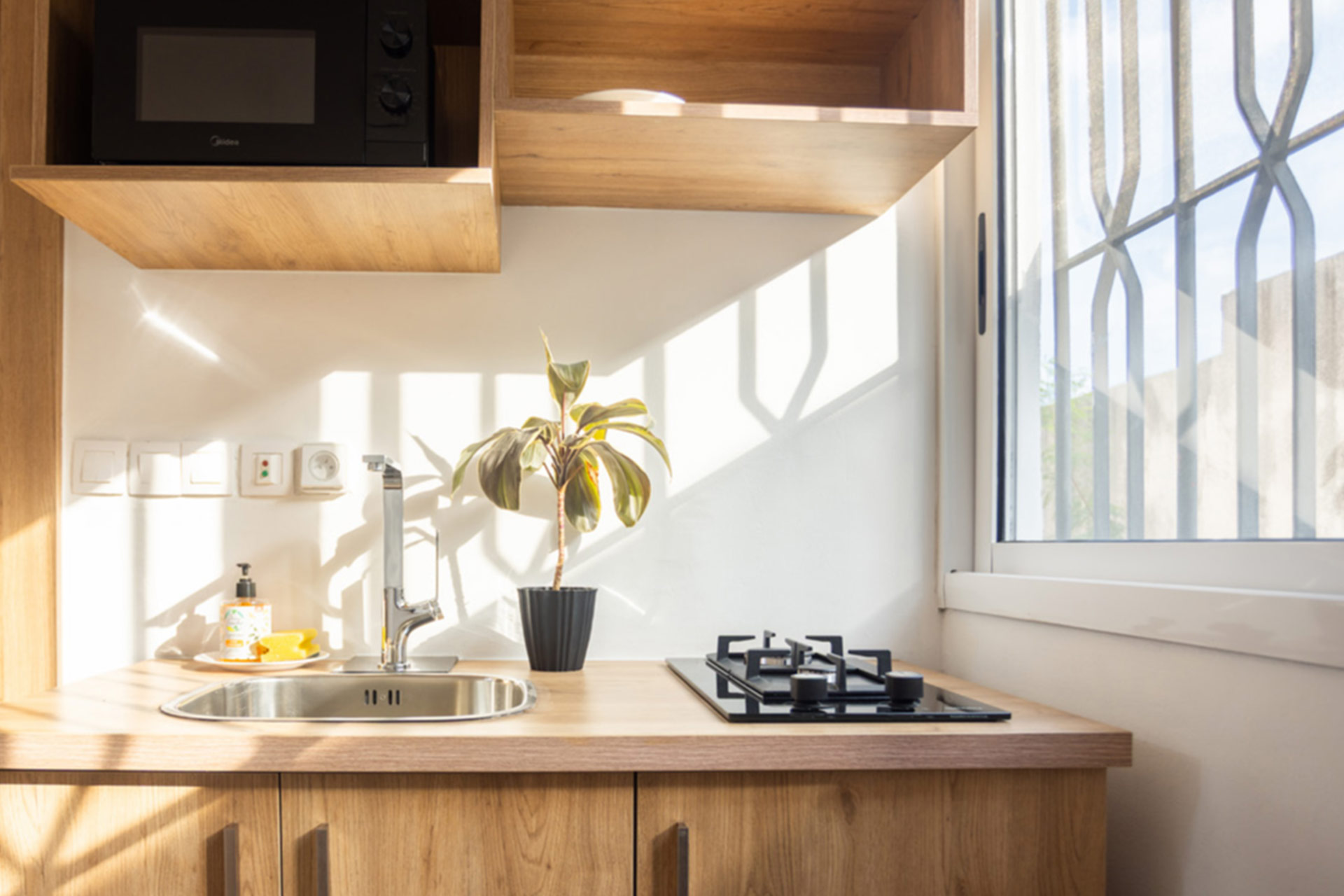 Chaque suite dispose d’une cuisine séparée ou d’une kitchenette qui vous permet de préparer vos repas en toute autonomie tout en préservant la tranquillité de votre espace de repos.