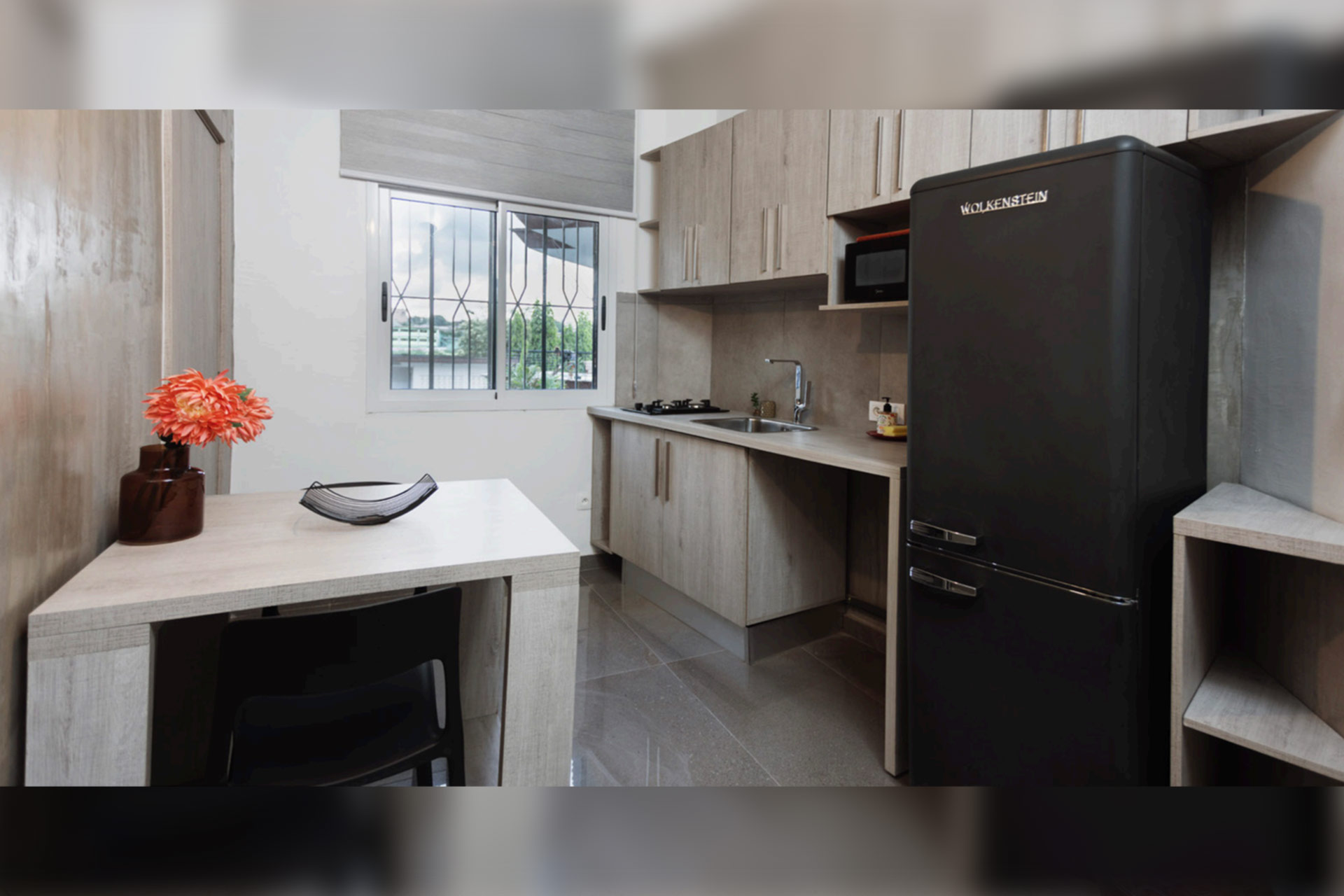 Chaque suite dispose d’une cuisine séparée ou d’une kitchenette qui vous permet de préparer vos repas en toute autonomie tout en préservant la tranquillité de votre espace de repos.